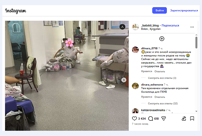 Пресс-центр Министерства здравоохранения Кыргызстана прокомментировал 24.kg распространившуюся в социальных сетях информацию о якобы размещении рожениц в коридорах Кыргызского научного центра репродукции человека (КНЦРЧ).