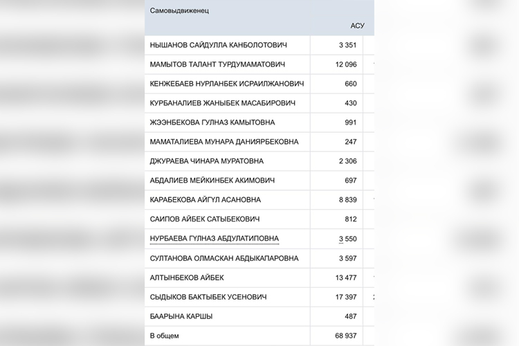 По итогам голосования Бакыт Сыдыков набрал 17 тысяч 397 голосов. Вторым стал Айбек Алтынбеков — 13 тысяч 477 голосов. Среди женщин-кандидатов наибольшую поддержку получила Айгул Карабекова — 8 тысяч 839 голосов. Талант Мамытов набрал более 12 тысяч голосов.