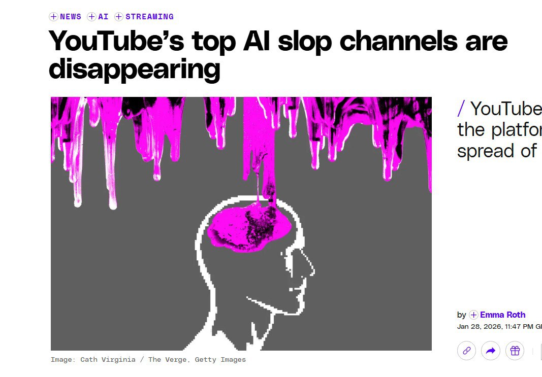 Удаление каналов произошло вскоре после того, как генеральный директор YouTube Нил Мохан затронул проблему распространения низкокачественного контента, созданного с помощью ИИ. Он отмечал, что YouTube планирует сократить распространение ИИ-слопа путем «усовершенствования уже используемой системы борьбы со спамом и кликбейтом».